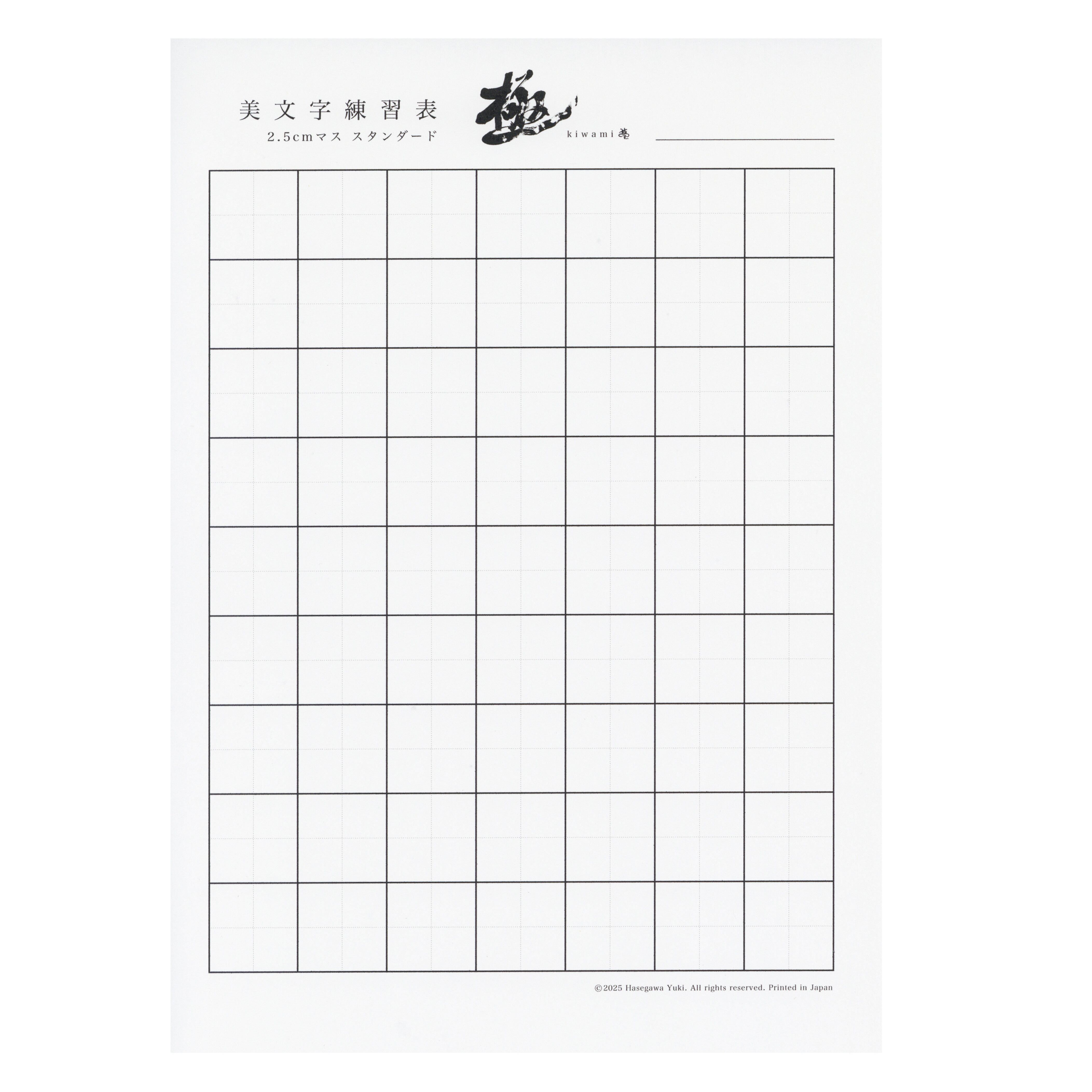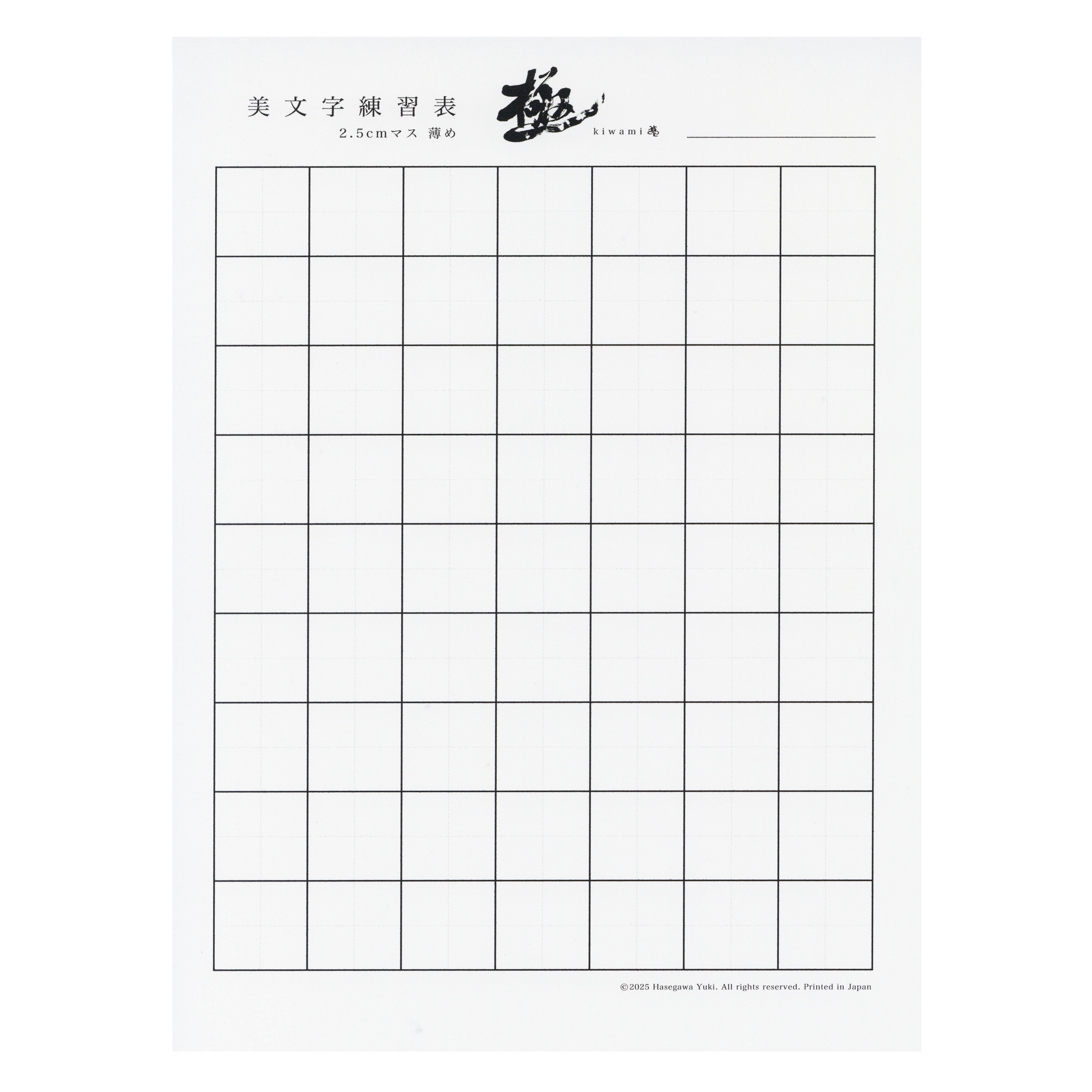 こちらの練習表のマスサイズは2.5cmです。