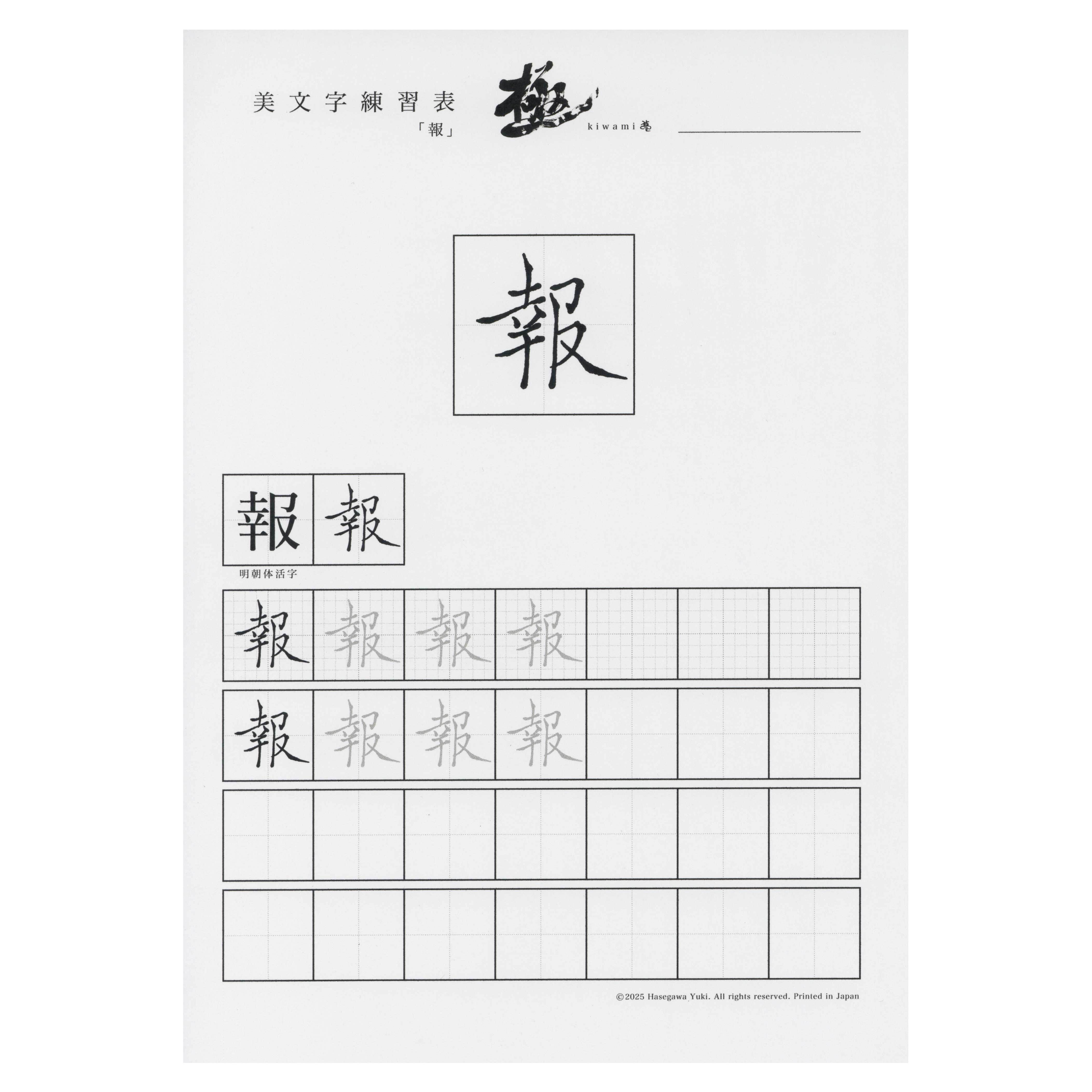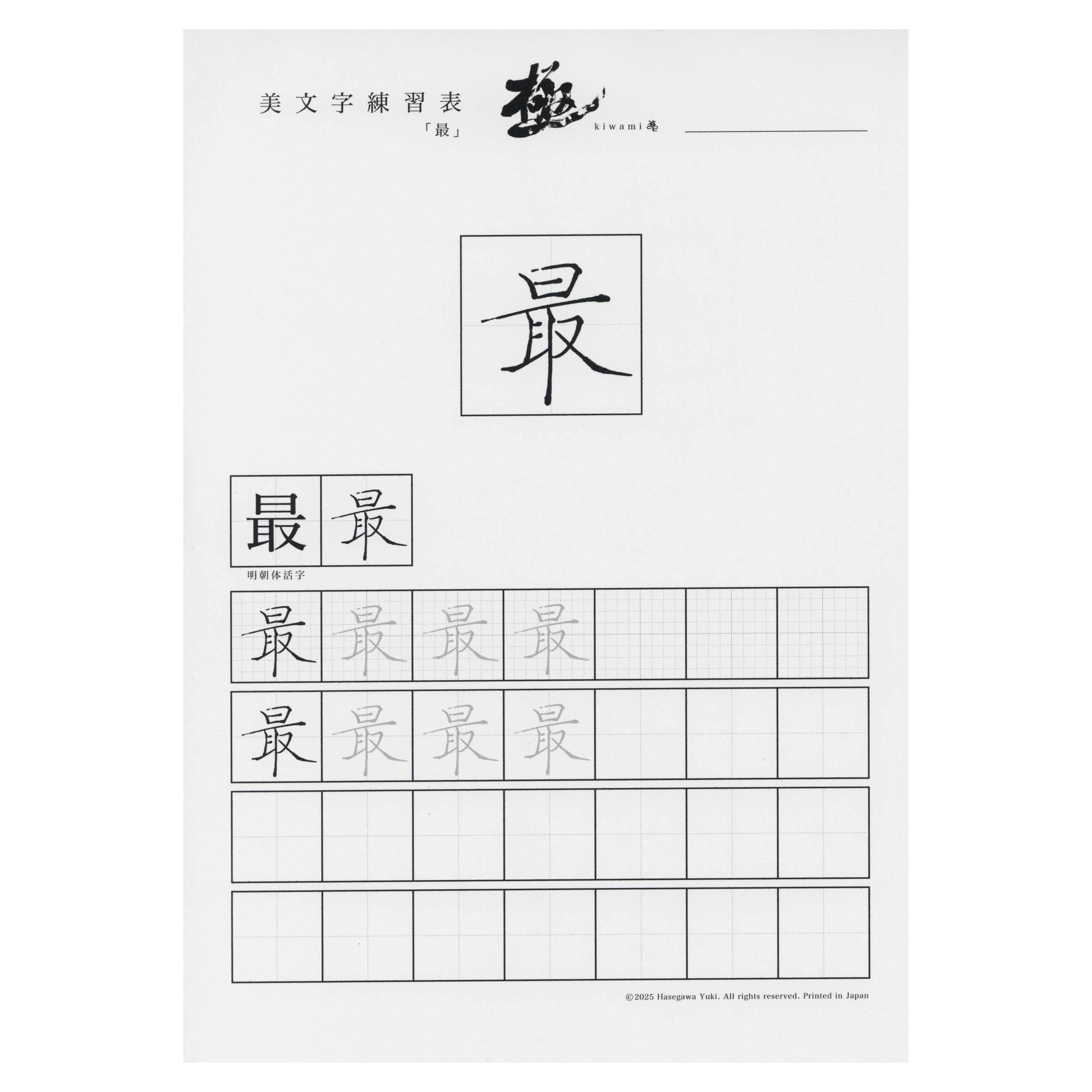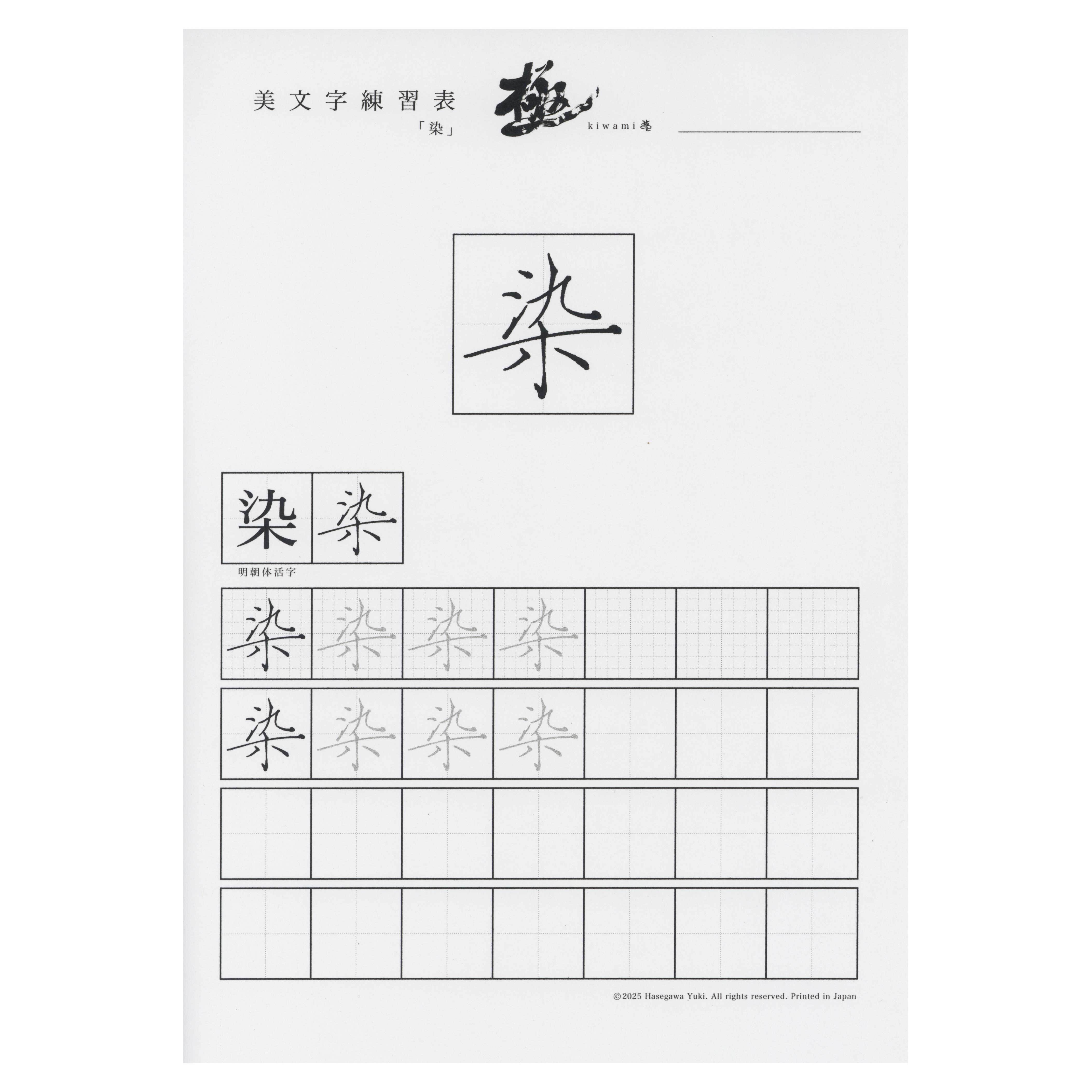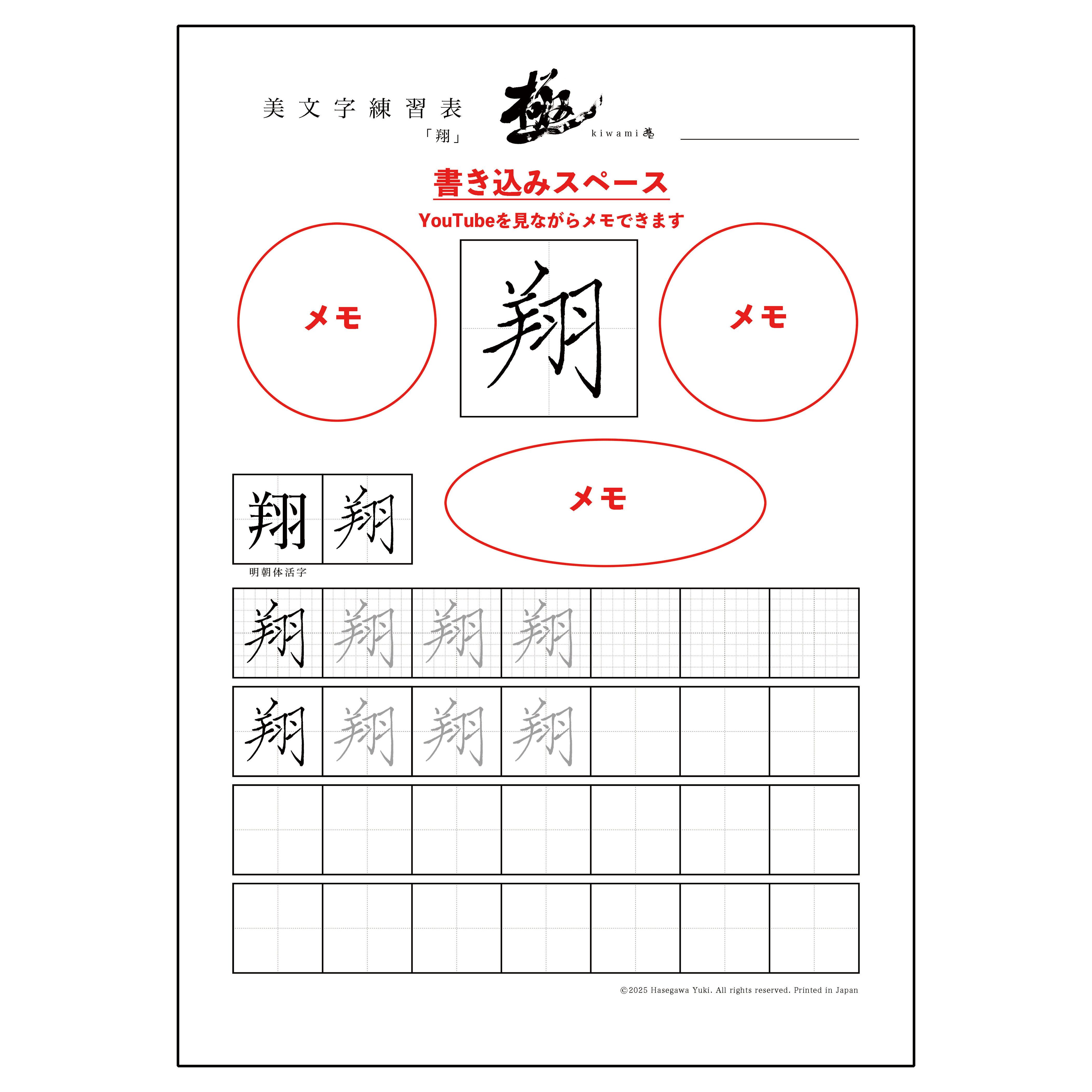 5cmサイズの大きな手本があり、さらに周りにメモを書き入れるスペースがあります。