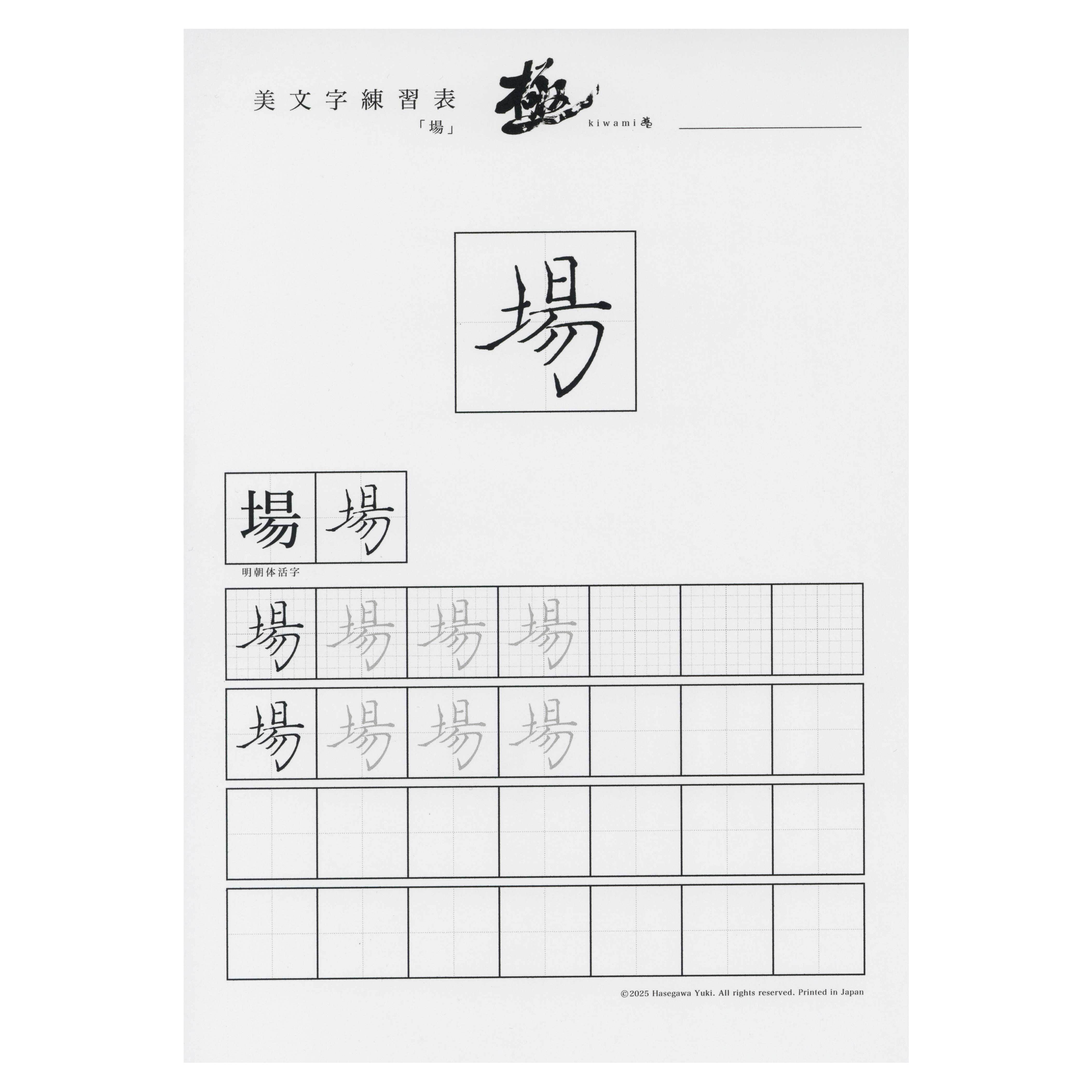 例:「谷」を購入された場合、「谷」の同じ手本が3枚付いてきます。